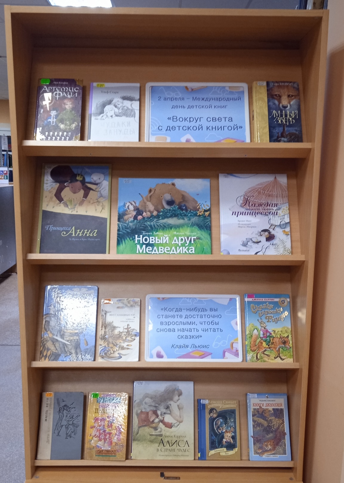 Книжная выставка в библиотеке «Вокруг света с детской книгой» размещена в зале абонемента (ГУК, 1 этаж), составитель и фото С.М. Карамутдинова.