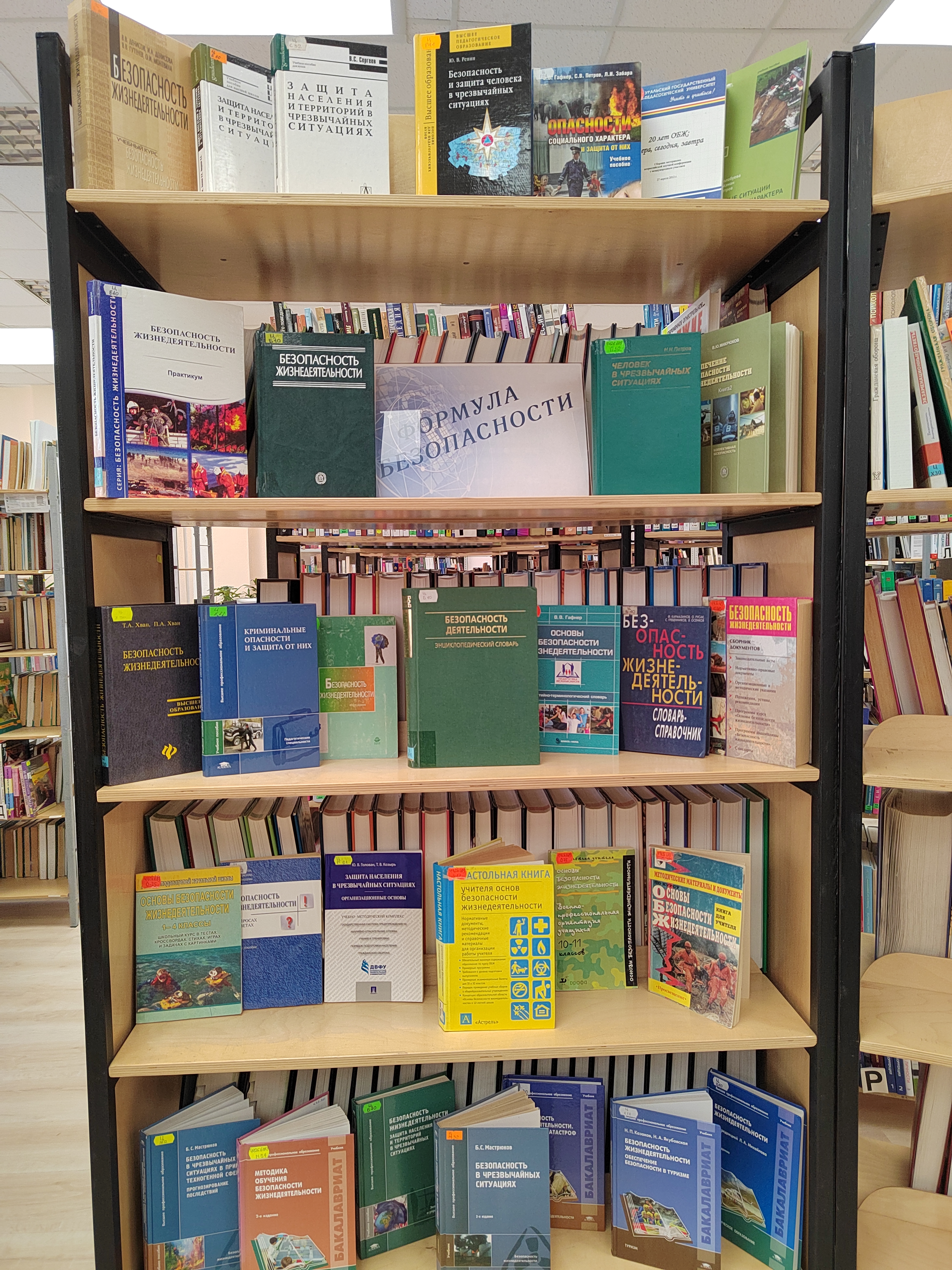 С целью продвижения знаний о гражданской обороне и безопасности жизнедеятельности в Электронно читальном зале библиотеки оформлена тематическая выставка «Формула безопасности». Современные книжные издания посвящены вопросам предупреждения чрезвычайных ситуаций, защиты населения и территорий от опасностей, оказания помощи населению, ликвидации последствий в чрезвычайных ситуациях природного и техногенного характера; проблемам безопасности поведения человека (составители: Н. Г. Чернакова, Е. Жигарева).