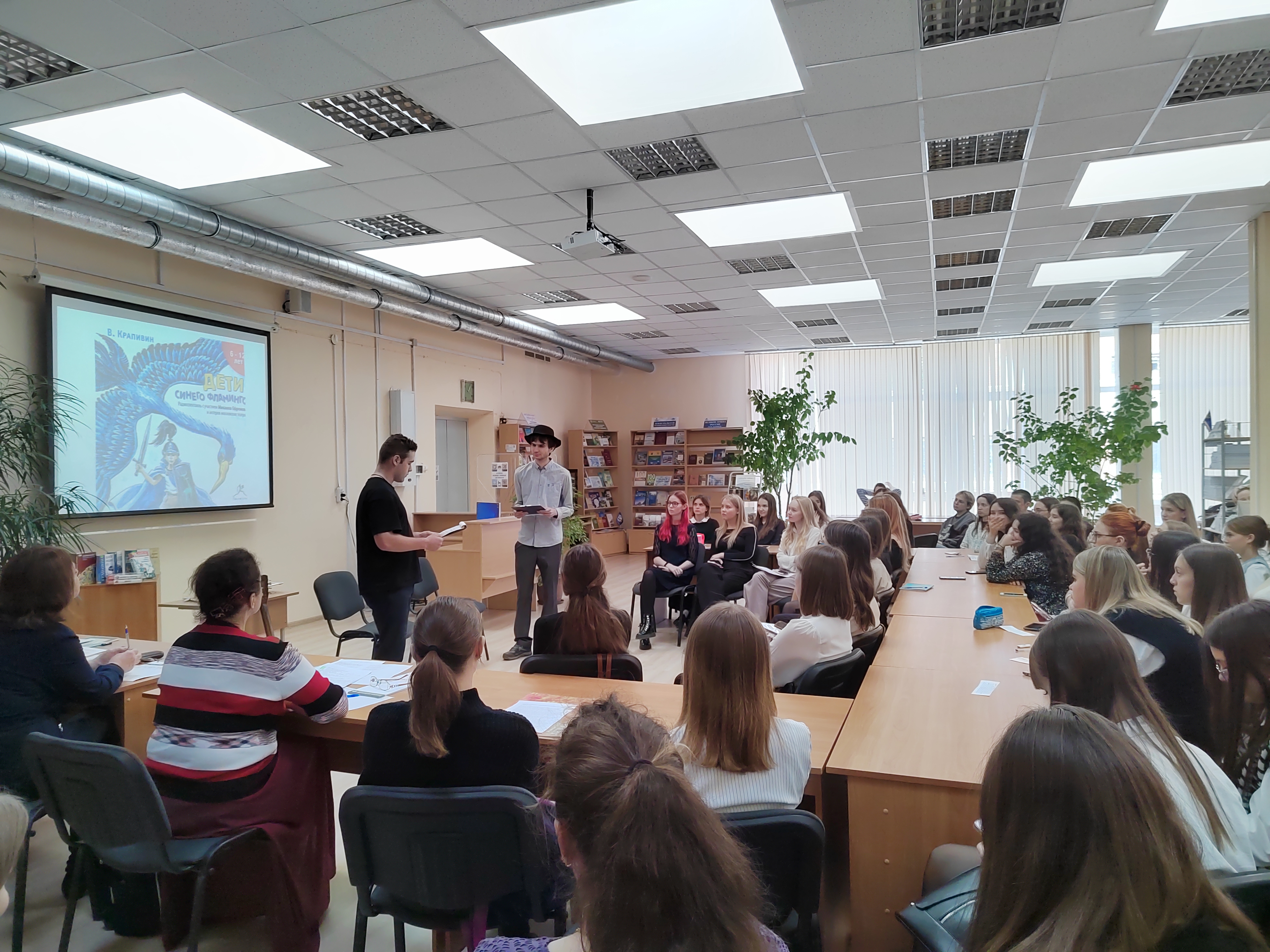 4 октября, в рамках практико-ориентированного научного исследования обучения методике работы с детской книгой в цифровой среде, как нестандартная образовательная практика, состоялась Литературная гостиная к Международному дню учителей и юбилею отряда «Каравелла», организованная кафедрой ИПиПД и Научной библиотекой. Модель организации события реализована на основе взаимодействия читателей, студентов 1 курса, «вокруг крапивинской повести-сказки» (сквозные образы и мотивы; пересечение миров реального и сказочно-фантастического; нравственный выбор героев-мальчишек) в неразрывном единстве педагогических и литературных идей писателя в концепции самоценности и защиты Детства. (1 часть. «Здравствуйте, Владислав Петрович!»).