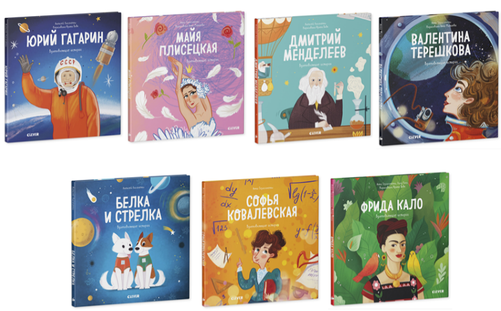 Встреча с детской книгой может стать ярким событием. Чем интересны «Вдохновляющие истории» издательства «Клевер»? Это яркие, красивые книги с интерактивным компонентом, занимательное содержание дано в доступной для детей форме, текст сопровождается замечательными детальными иллюстрациями, созданными специально для этих книг, которые помогут детям поверить в себя, найти свое призвание. Серия получила премию Национального конкурса «Книга года».