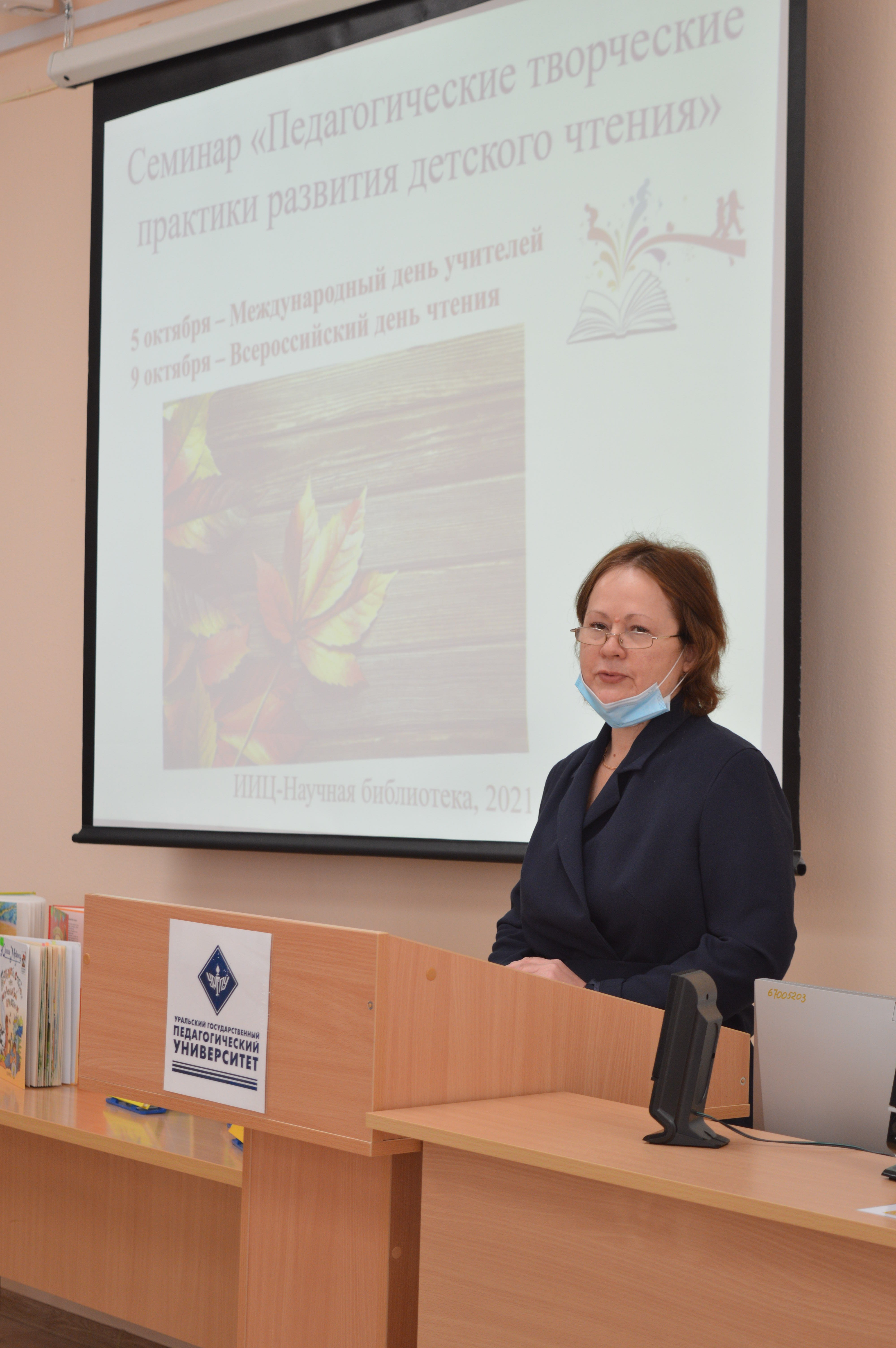 6 октября в Научной библиотеке состоялась встреча-семинар «Педагогические творческие практики развития детского чтения», участниками события стали студенты 1 курса ИПиПД под руководством С. Д. Томиловой, доцента кафедры русского языка и методики его преподавания в начальных классах; Л. И. Забара, директор НОЦ экспертиз и продвижения русского языка и культуры; группа социального театра «Отражение» под руководством Н. М. Серебренниковой. Актуальность семинара – в раскрытии миссии педагога в формировании читательской культуры детей на ее начальном этапе развития и представлении действенных педагогических творческих практик. Направления работы семинара, темы к обсуждению – в Информационно-методическом письме.