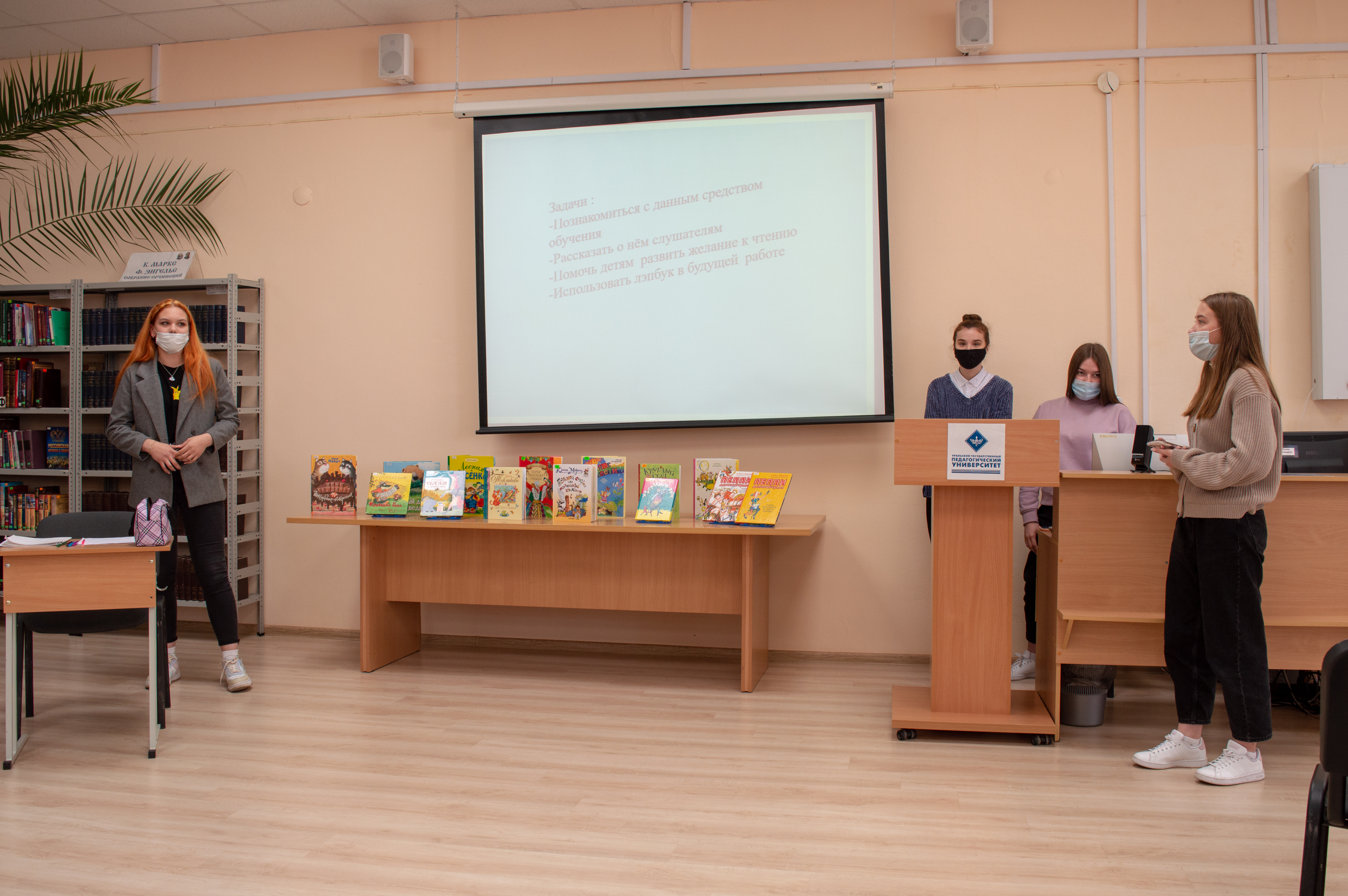 Студенты представили творческие формы презентации книги для детей и технологии развития интереса к чтению дошкольников: буктрейлер, лэпбук, арт-бук, сторисек, книга-игра, книжный уголок. Ведь книга, прочитанная в детстве, влияет на дальнейшее развитие ребенка, формирует миропонимание, вырабатывает определенные нормы поведения. Наиболее интересные работы, отметила С. Д. Томилова, подготовили по темам: «Арт-бук», Диана Давлетбаева, Валерия Демачёк, Кристина Козулина, Алина Пелевина; «Технология «лэпбукинг» и её применение в педагогической практике», Полина Лачихина, Елена Пирожкова, Маргарита Савина, Дарья Снигирёва; «Книжный сторисек», Мария Фокина, Екатерина Третьякова, Екатерина Фролова, Эмилия Хохлова.