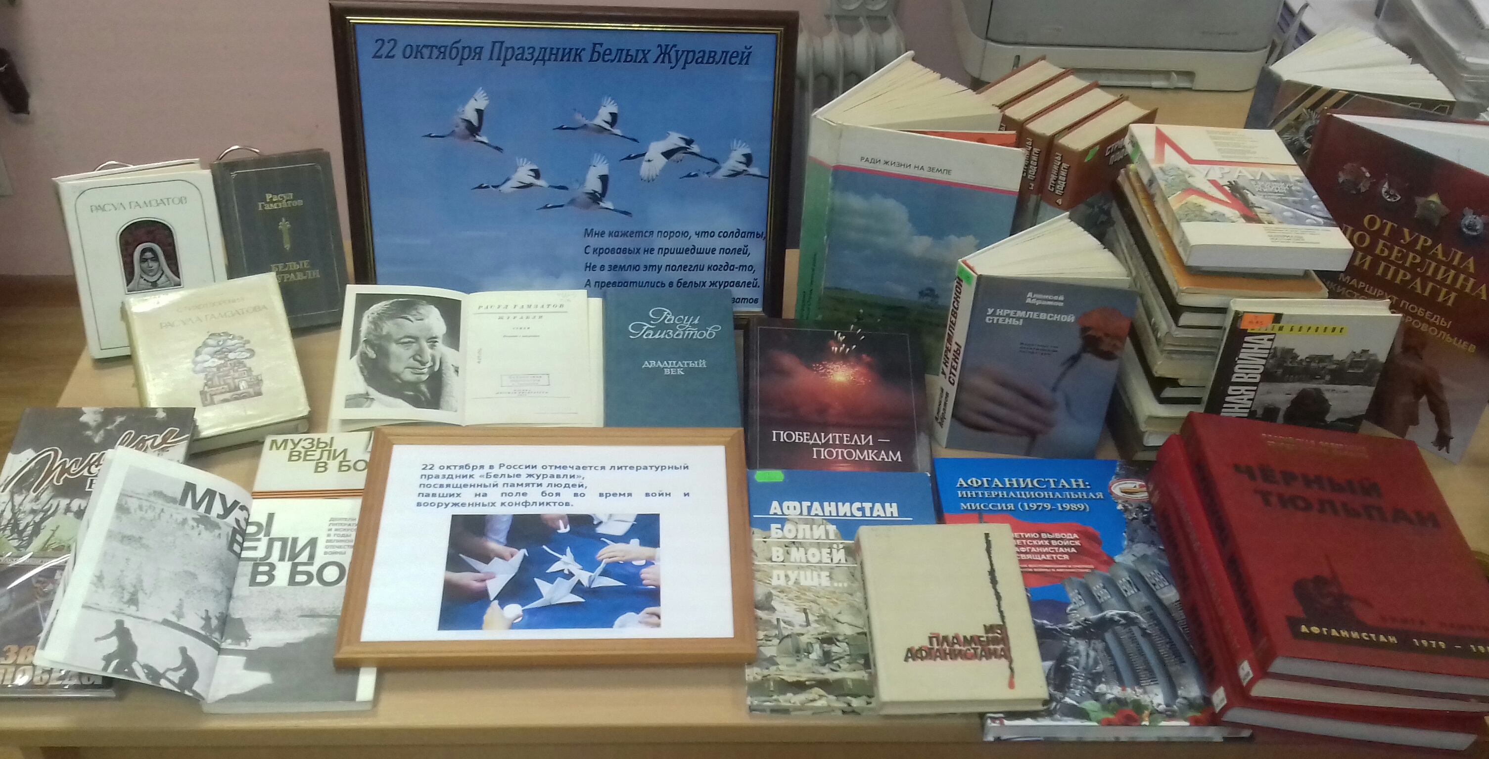 22 октября – Праздник белых журавлей, посвященный памяти солдат, погибших на полях сражений всех войн. Такое поэтическое название появилось благодаря стихотворению «Журавли» народного поэта Дагестана Расула Гамзатова, именно он стал основателем этого памятного дня в России как праздника духовности. Также литературный праздник способствует укреплению многовековых традиций дружбы народов многонациональной страны.